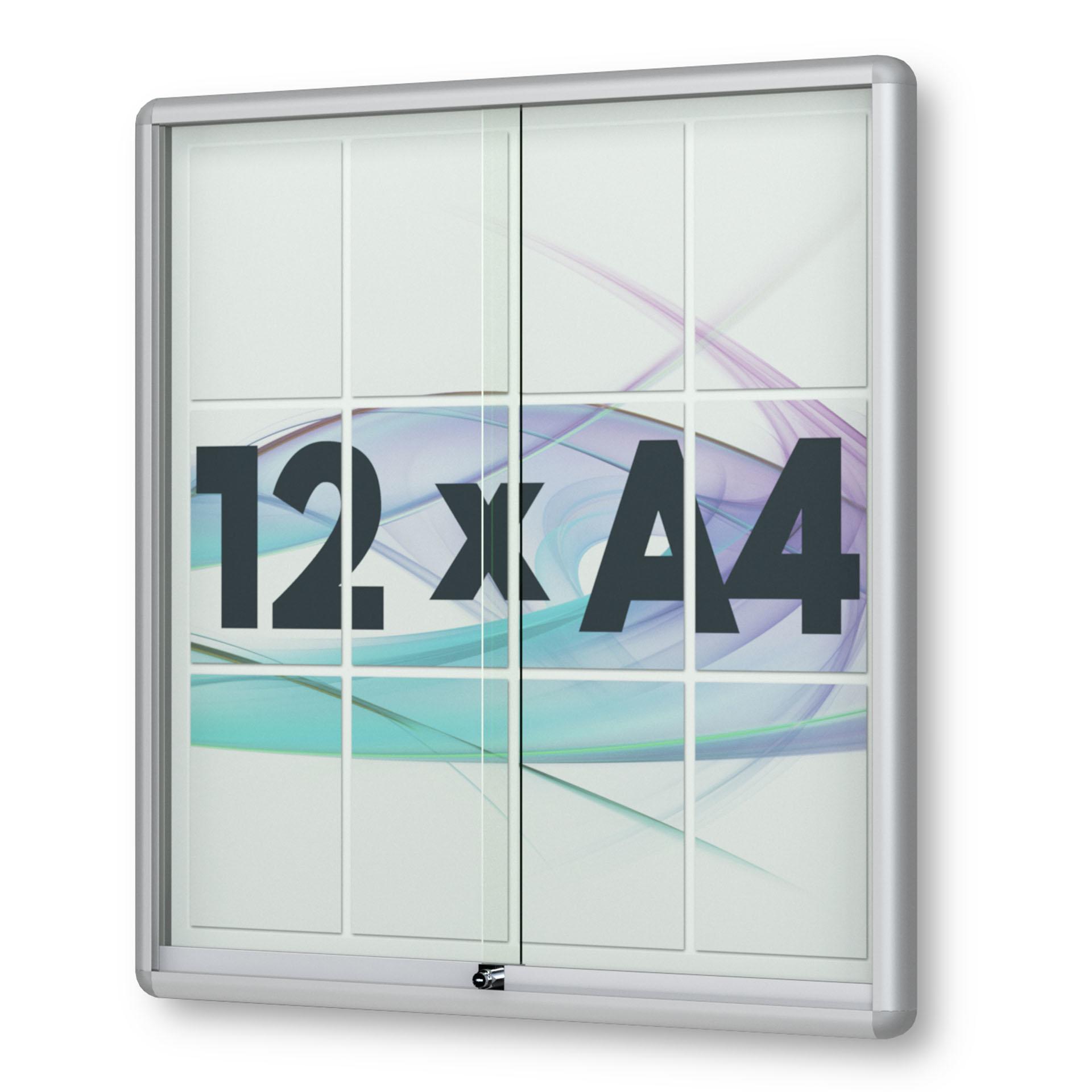 12 x DIN A4 Schaukasten Moveo - "die Schulvitrine" - mit Brandschutzklasse A1 - Rollengelagerte Schiebetüren✓ abschließbar✓ ESG-Sicherheitsglas✓