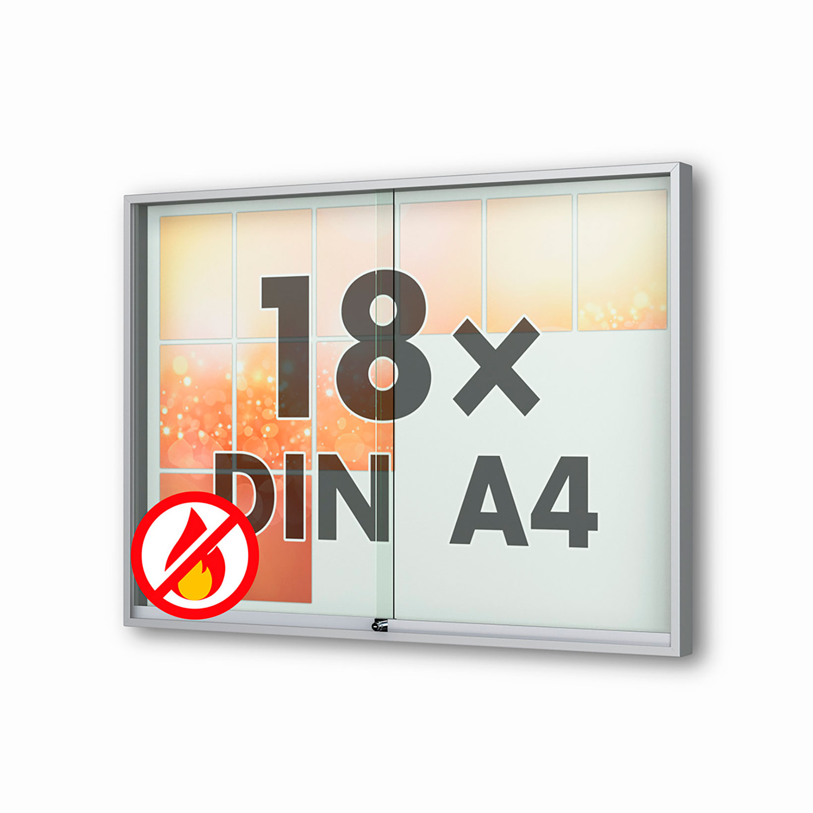 Plakatvitrine: | Brandschutz, Montageort: Innen, Wandmontage, abschliessbar, mit Schiebetüren |