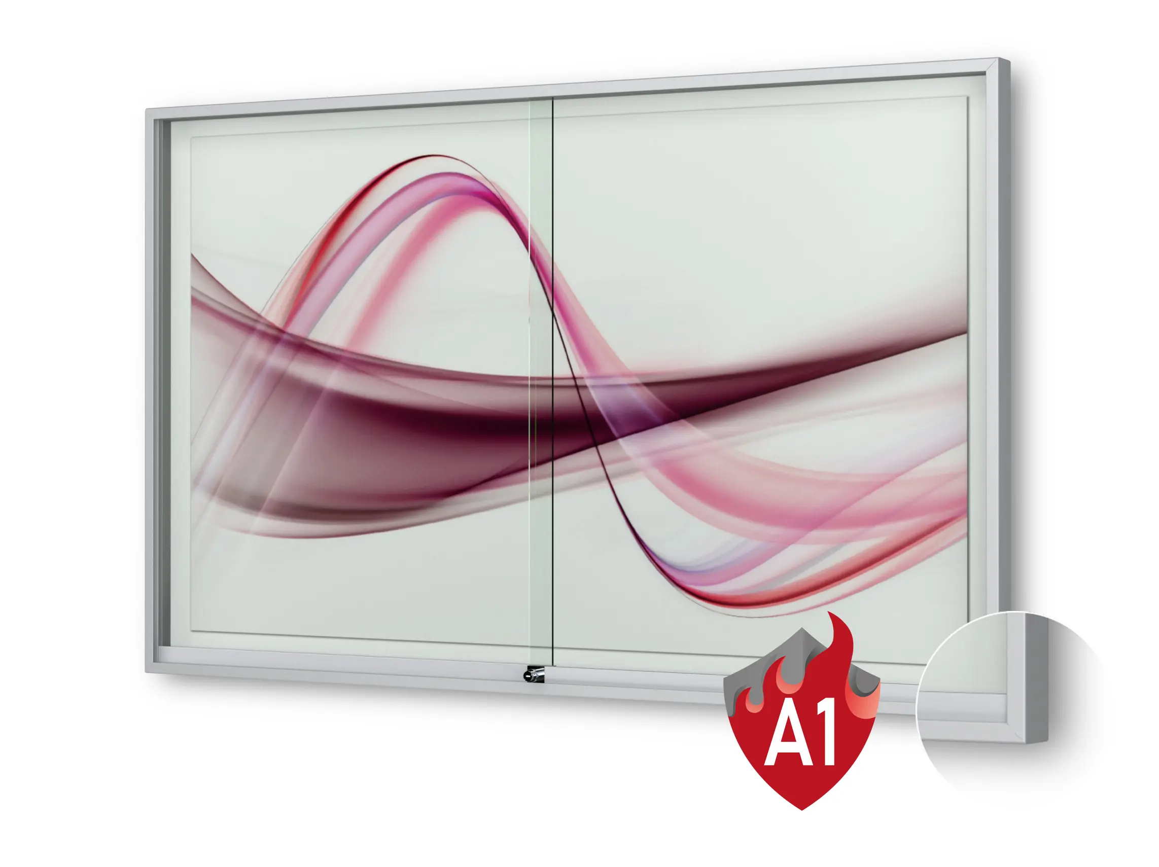 Schaukasten Fortis - eckig - mit Schiebetüren -   60 mm Gehäusetiefe, rollengelagerte Schiebetüren, höchster Brandschutz (A1) Größe - 6 × DIN A4 • 710 × 695 mm Öffnung - rollengelagerte Schiebetüren Verglasung - Einscheiben-Sicherheitsglas / ESG Oberfläche - Eloxierung in matt-silber (E6/EV1) Beleuchtung - ohne Beleuchtung Schließung - Sicherheitsschlösser mit je 2 Schlüsseln Rückwand - weiße, magnethaftende Rückwand inkl. 10 Magnete Schaukasten Fortis mit Schiebetüren – Brandschutzklasse A1 – Ihre Lösung für sichere und elegante Aushänge Suchen Sie einen sicheren, funktionalen und stilvollen Schaukasten für Ihre Schule, Universität oder öffentliche Einrichtung? Der Schaukasten Fortis mit Schiebetüren bietet nicht nur modernste Sicherheitsmerkmale, sondern auch einen erstklassigen Brandschutz gemäß Brandschutzklasse A1. Damit ist dieser Schaukasten besonders für hochsensible Bereiche und öffentliche Einrichtungen geeignet, die höchste Sicherheitsstandards verlangen. Ihre Vorteile im Überblick: Brandschutzklasse A1: Der Fortis-Schaukasten erfüllt die strengen Anforderungen der Brandschutzklasse A1, was ihn besonders geeignet für den Einsatz in Schulen, Behörden und öffentlichen Gebäuden macht. Ihre Aushänge und Exponate sind bestens vor möglichen Brandgefahren geschützt. Praktische Schiebetüren: Der Schaukasten ist mit beidseitig öffnenden Schiebetüren ausgestattet, die eine besonders einfache und komfortable Handhabung ermöglichen. Diese innovative Türmechanik spart Platz und erleichtert den schnellen Zugriff auf Ihre Ausstellungsinhalte. Robuste und sichere Glasoberfläche: Der Schaukasten Fortis wird mit bruchfestem Sicherheitsglas geliefert, das Ihre Informationen zuverlässig schützt und gleichzeitig eine klare und attraktive Sicht auf die Aushänge ermöglicht. Witterungsbeständig und langlebig: Der Fortis-Schaukasten ist für den Innen- und Außeneinsatz geeignet. Dank seiner witterungsbeständigen Beschichtung und der hochwertigen Verarbeitung bleibt er selbst bei starkem Gebrauch oder wechselnden Witterungsbedingungen langlebig und funktional. Vielseitige Einsatzmöglichkeiten: Ob für Stundenpläne, Ankündigungen, wichtige Bekanntmachungen oder Kunstwerke – der Fortis-Schaukasten ist die ideale Lösung für Schulen, Universitäten, Messen oder öffentliche Institutionen, die auf Sicherheit und Präsentation gleichermaßen Wert legen. Elegantes Design: Mit seinem modernen, klaren Design fügt sich der Fortis perfekt in jedes Umfeld ein – sowohl im Innen- als auch im Außenbereich. Die minimalistische Bauweise sorgt dafür, dass der Schaukasten sowohl funktional als auch optisch ansprechend ist. Warum der Schaukasten Fortis die ideale Wahl für Ihre Einrichtung ist: Zertifizierter Brandschutz: Durch die Brandschutzklasse A1 ist der Fortis-Schaukasten besonders sicher und schützt nicht nur Ihre Ausstellungen, sondern auch Ihre Einrichtung. Innovative Schiebetüren: Der moderne Schiebetürmechanismus sorgt für eine platzsparende und benutzerfreundliche Handhabung, ideal für belebte Bereiche. Langlebigkeit und Robustheit: Der Fortis ist dank seiner hochwertigen Materialien und Verarbeitung äußerst widerstandsfähig und besonders pflegeleicht – perfekt für den täglichen Gebrauch in stark frequentierten Bereichen. Sicherheit und Funktionalität: Ideal für Schulen, öffentliche Einrichtungen und alle, die einen zuverlässigen, sicheren und funktionellen Schaukasten suchen. Vertrauen Sie auf Vitrinen.de für Ihre Präsentationslösungen. Setzen Sie auf den Schaukasten Fortis mit Schiebetüren und Brandschutzklasse A1, um höchste Sicherheitsstandards und eine stilvolle Präsentation Ihrer Inhalte zu gewährleisten. Kontaktieren Sie uns noch heute, um mehr über den Schaukasten Fortis zu erfahren oder ein individuelles Angebot zu erhalten!