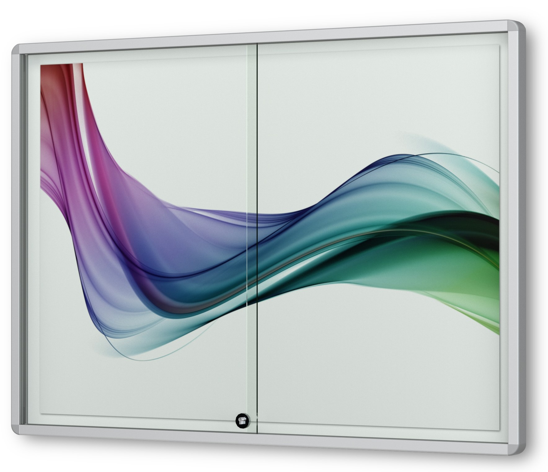 Schaukasten Moveo - die Schulvitrine - mit Brandschutzklasse A1 - Rollengelagerte Schiebetueren abschliessbar ESG-Sicherheitsglas